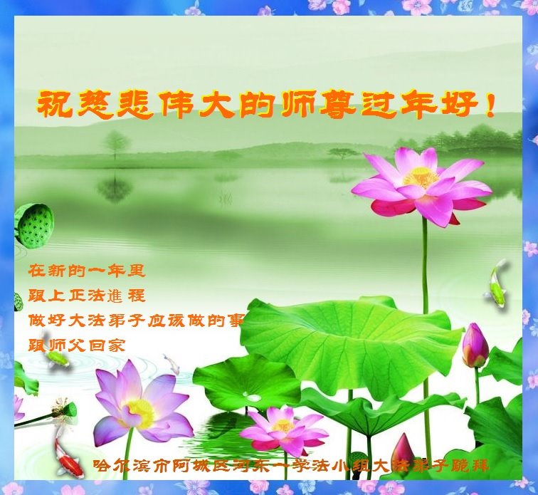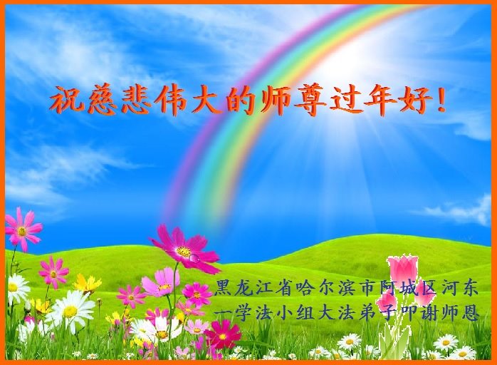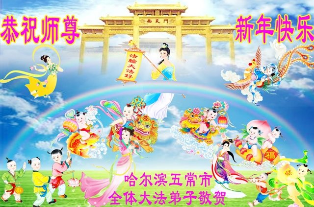 值此新年來臨之際,黑龍江省哈爾濱五常市全體大法弟子給師父拜年!師父過年好!恭祝師尊新年快樂!謝謝師父的慈悲救度之恩!
