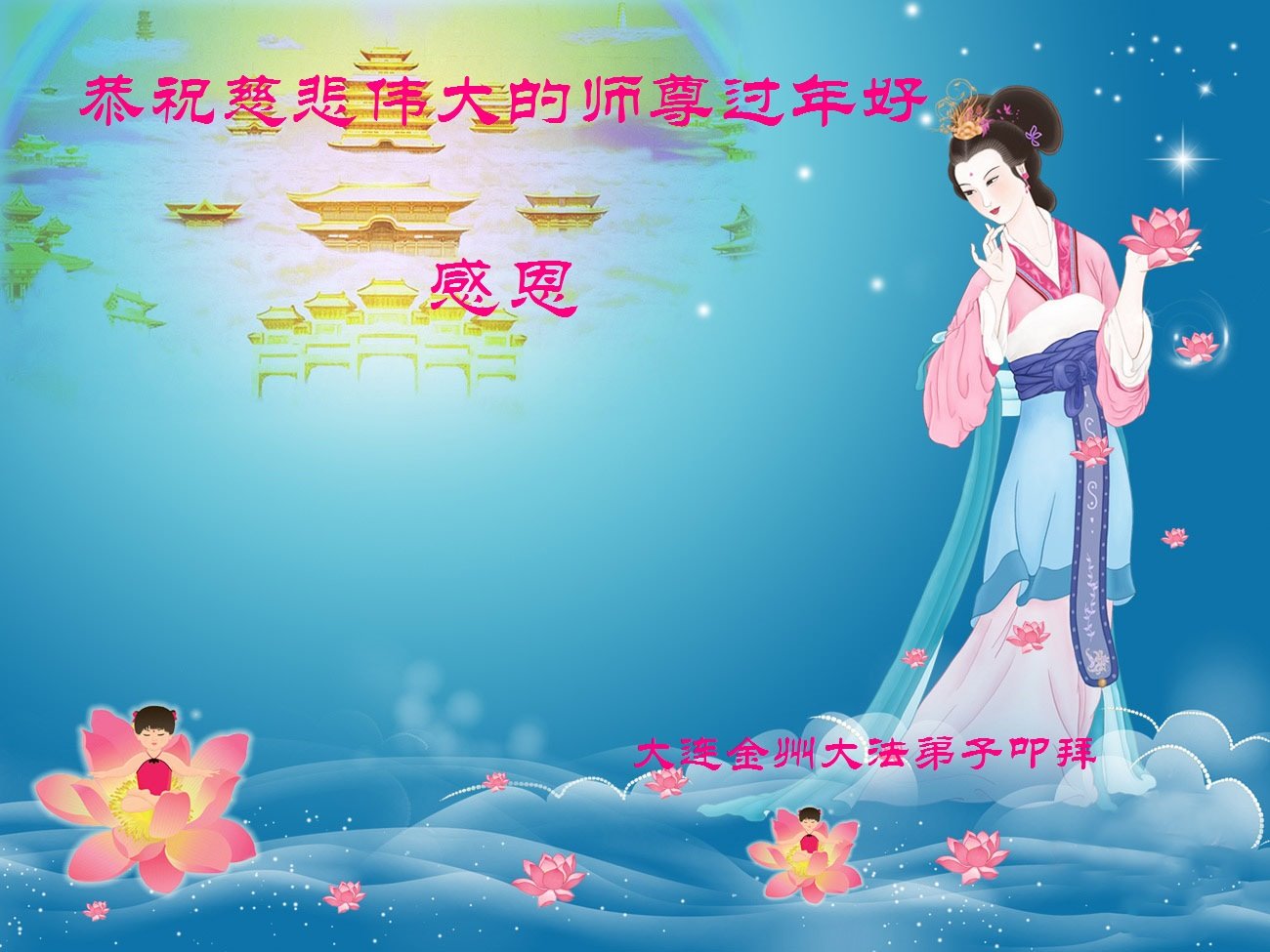 感謝師尊救度之恩!在新的一年裏,弟子一定做好三件事,絕不負師尊的厚望!弟子跪拜師尊!