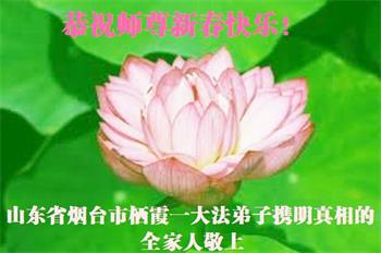 山東省東營市勝利油田一大法弟子及明真相的家人恭祝慈悲偉大的師父新年快樂!