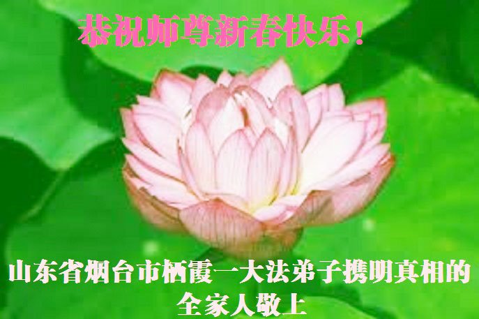 山東省煙台市棲霞一大法弟子攜明真相的全家人恭祝慈悲偉大的師尊新春快樂!