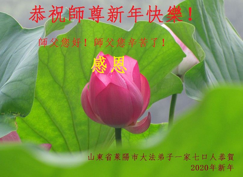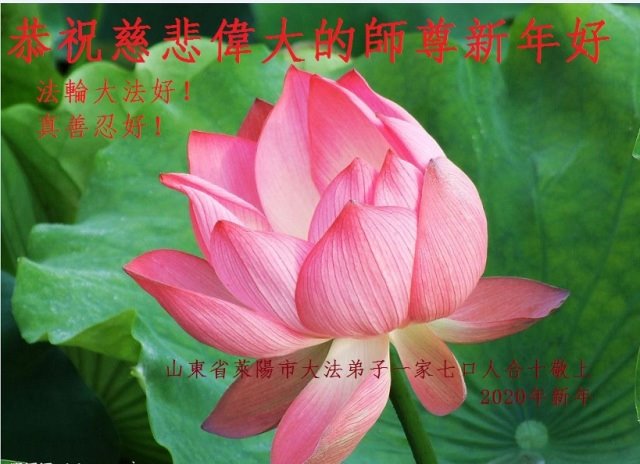 山東省煙台市萊陽市大法弟子一家七口(一人修煉,其餘人都支持大法)恭祝慈悲偉大的師尊新年佳節快樂!