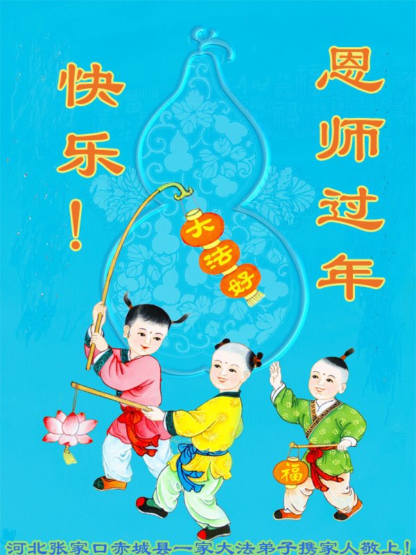 河北省張家口市一家三口代表本市不能上網的大法弟子恭祝慈悲偉大的師父過年好!