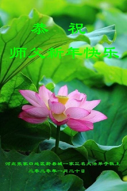 河北張家口地區蔚縣一大法弟子攜家人恭祝慈悲偉大的師父新年好!