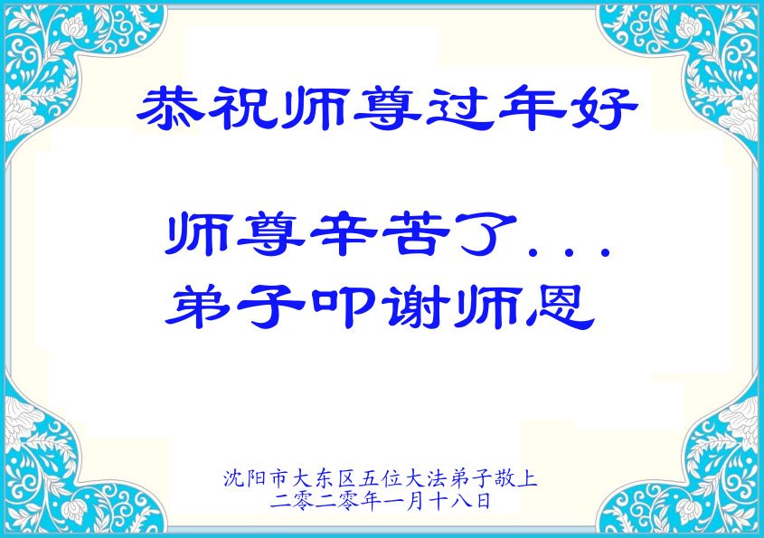 遼寧省瀋陽沈北新區一大法弟子代表全家恭祝師尊過年好!