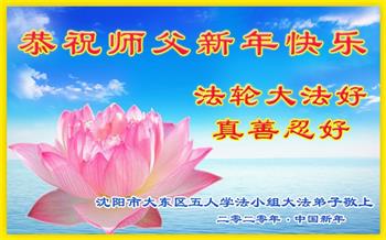 遼寧省瀋陽市大東區五人學法小組大法弟子恭祝師父新年快樂!