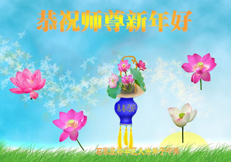 感恩偉大的師父洪傳大法,使我們有幸脫離苦海,是您牽著我們的手讓我們走在神的路上。對您的感恩無以言表,在新的一年裏,我們一定要學好法,以法為師,無條件的向內找,把自己應該做好的一切做的更好,緊隨師父,跟師父回家!