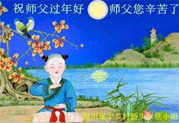 四川遂寧鄉村橋頭學法小組大法弟子恭祝師父過年愉快!