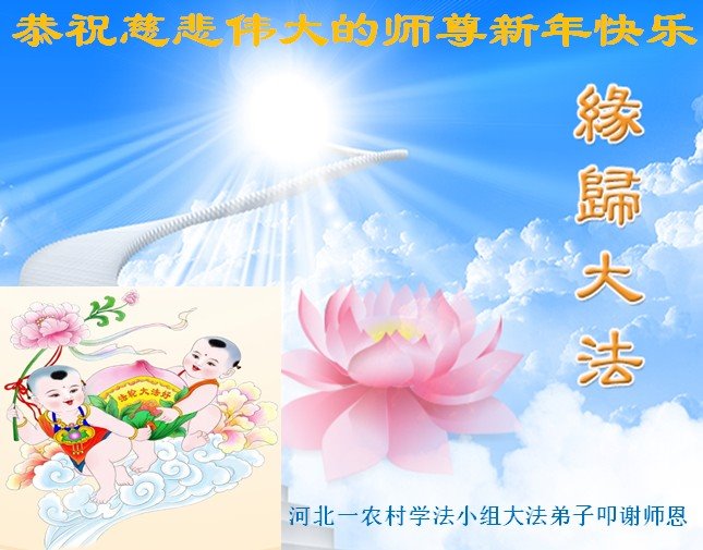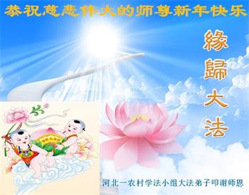 河北一農村學法小組大法弟子恭祝慈悲偉大的師尊新年快樂!叩謝師恩!