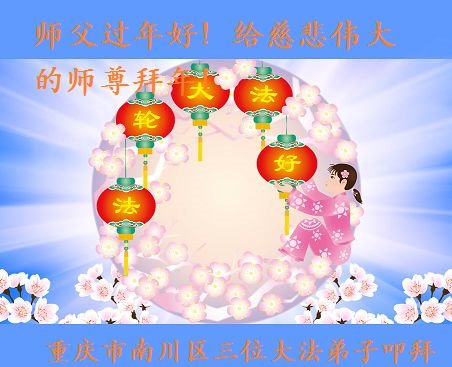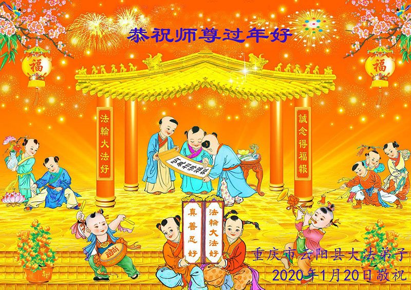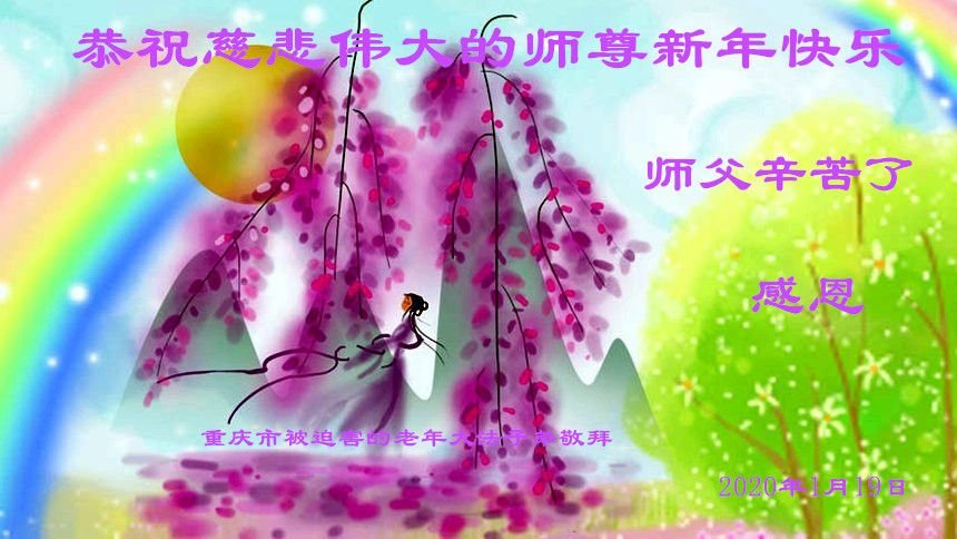 重慶市一大法弟子給慈悲偉大的師尊拜年!感恩師尊的慈悲苦度!