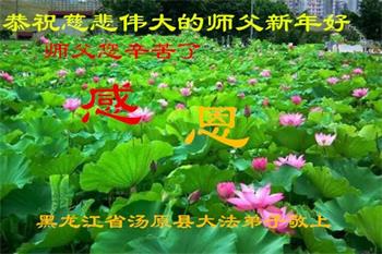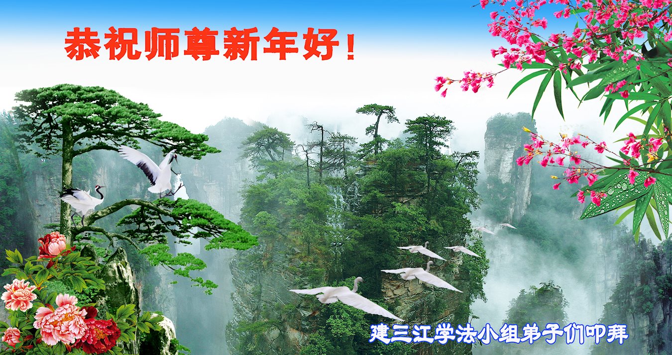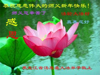 師父您辛苦了,在新年到來之際,建三江一學法小組大法弟子恭祝師尊新年快樂!真心的希望師尊在新的一年裏多一些欣慰。我們的學法小組在師尊的慈悲保護下平穩的走到了今天。再一次感謝師尊的慈悲救度。