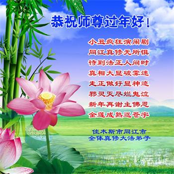 值此新年來臨之際,向師父致以新年問候!師父在淨化宇宙、揚善去惡、拯救世人。我們全家都在大法受益中,身心健康,道德回升。這麼好的大法卻被中共抹黑、迫害鎮壓法輪功學員,天理難容。我雖然還未修煉,我知道法輪大法好!我一定站在正義的一邊。
