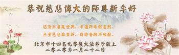 弟子與全家祖孫三代給您拜年:師父您辛苦了,我們全家祖孫三代在此給師尊跪拜合十,謝謝師父對我們生命的洪恩浩蕩!謝謝師父對我們生命的救度重生之恩!恭祝慈悲偉大的師尊過年好!祝慈悲偉大的師尊新年快樂!