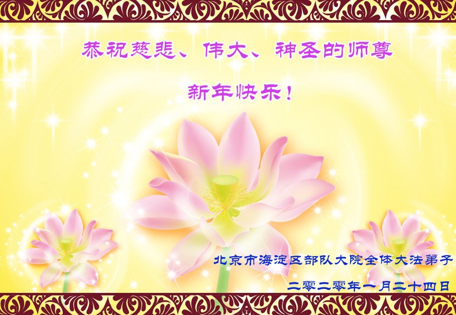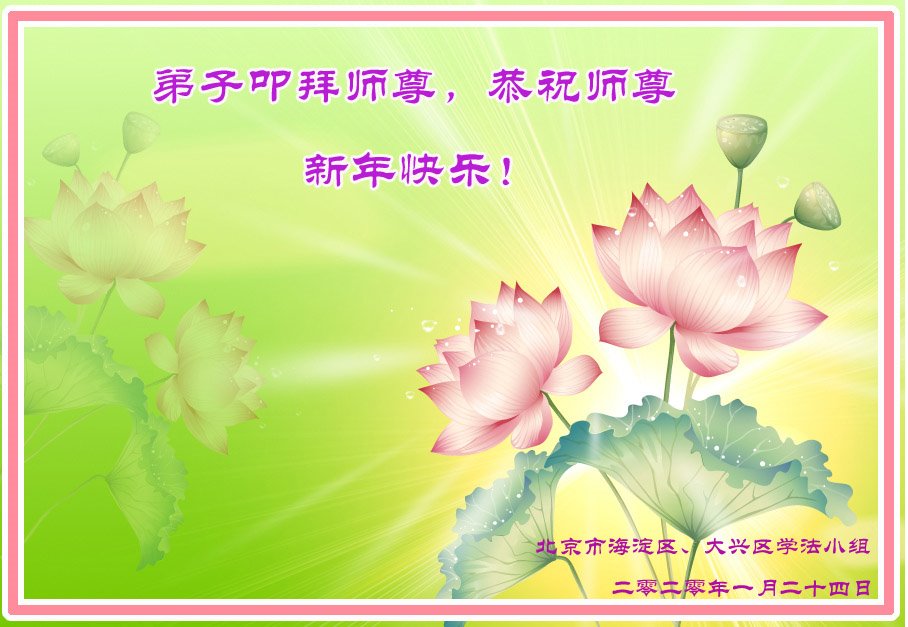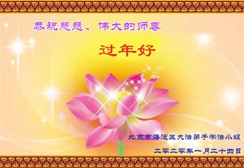 在這新年到來之際,我們懷柔區楊宋鎮的大法弟子,在此給師父拜年,祝師父新年好!師父為我們的修煉操碎了心,我們唯有精進實修,做好三件事,回報師尊的慈悲救度。