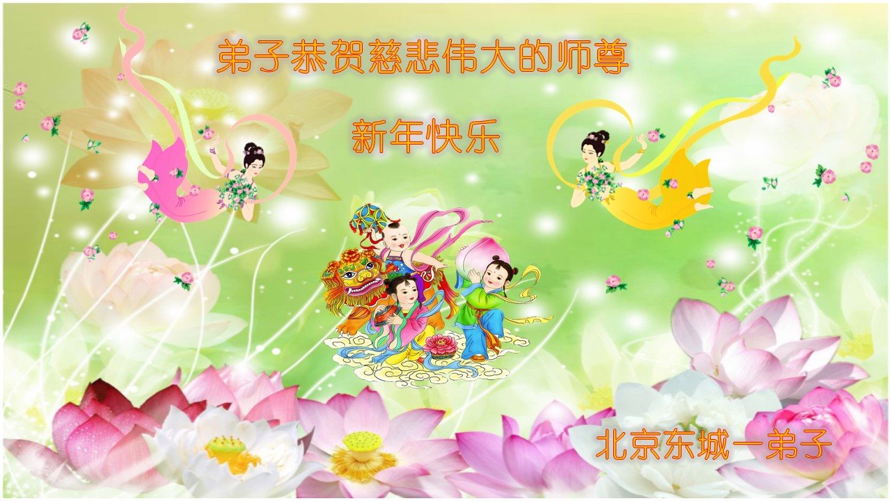 北京西城大法弟子給慈悲偉大的師父拜年!祝願師父新年快樂!感謝師父慈悲救度!感謝師父為弟子和眾生的巨大付出!在新的一年,弟子一定要多學法,做好三件事,修去執著,隨師把家還!