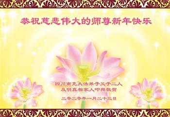 四川省德陽市中江縣夫妻同修恭祝師尊新年快樂!