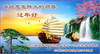 四川廣安一大法弟子恭祝師尊新年好!恭祝師尊新春快樂!感謝師尊的慈悲救度,我一定努力做好三件事,多學法,多救人。