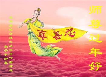 大學大法弟子給師尊拜年,恭祝師尊新年快樂!
