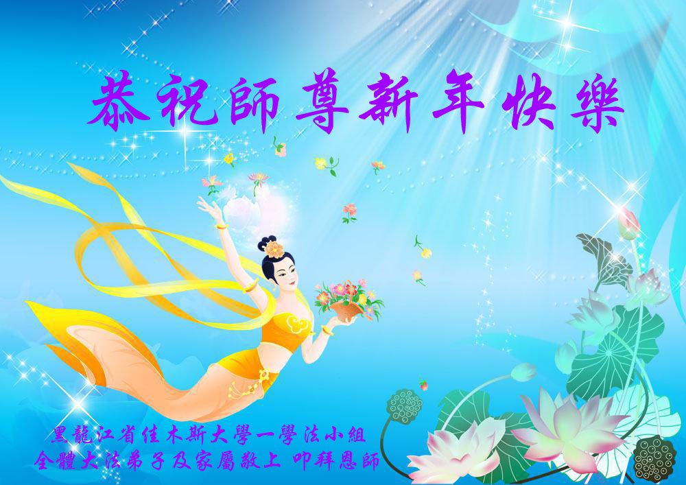 黑龍江省佳木斯大學一學法小組大法弟子及家屬恭祝師尊新年快樂!