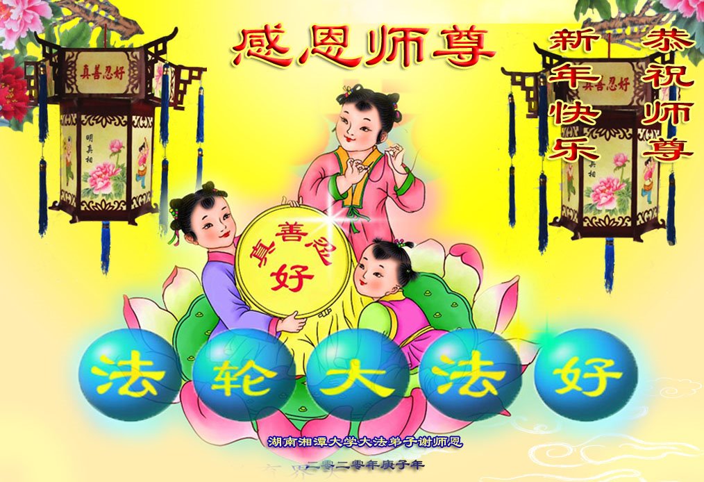 恭祝慈悲偉大的師尊新年好!願您早日回到中國,普天同慶偉大的時刻,萬象更新,謝謝您一路保護,我們要向內找,多救人,助師正法,圓滿隨師還。