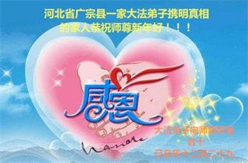 河北省邢台市廣宗縣一大法弟子攜全家恭祝師尊過年好!給師尊拜年了!