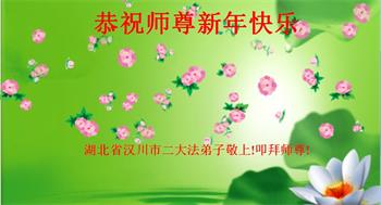 值此2020年黃曆中國新年來臨之際,湖北漢川市全體大法弟子恭祝慈悲偉大的師父過年好!一定保持修煉如初的狀態,做好三件事,跟上師父正法進程。