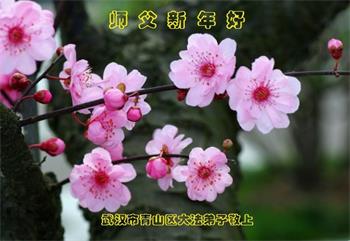 我們是仙桃市的大法弟子,我們全家五口都沐浴在大法的法光下,我們在這裏恭祝師父新年好!