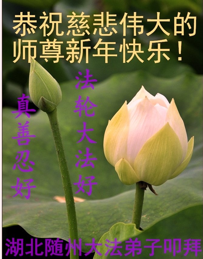 師尊新年好!千言萬語道不盡對師尊的無限感恩!在助師正法所剩不多的日子裏,唯有精進報師恩!願眾生早日醒悟,明真相、得救度,不辜負師尊為眾生的承受!不辜負大法弟子在磨難中對眾生的呼喚。