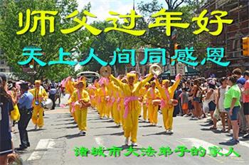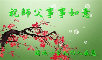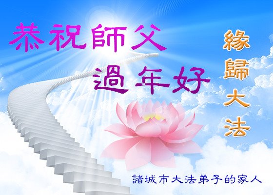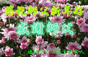 新年來臨,我們當兒女的給師父拜年,祝師父新年快樂!我們一家人都支持法輪大法,都盼著師父回國,盼著法輪功光耀人間的那一天。感謝師父!
