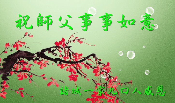 我們盼望您回國,與中國國內的弟子團聚一起過年。我們家族成員給師父拜年:祝師父一切順心如意!