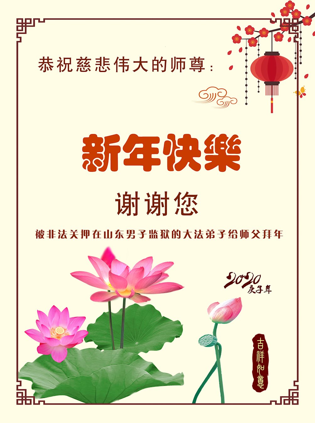 被非法關押在山東男子監獄的大法弟子給師父拜年!