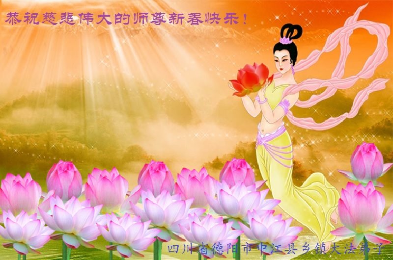 四川省德陽市中江縣鄉鎮大法弟子恭祝慈悲偉大的師父新年快樂!