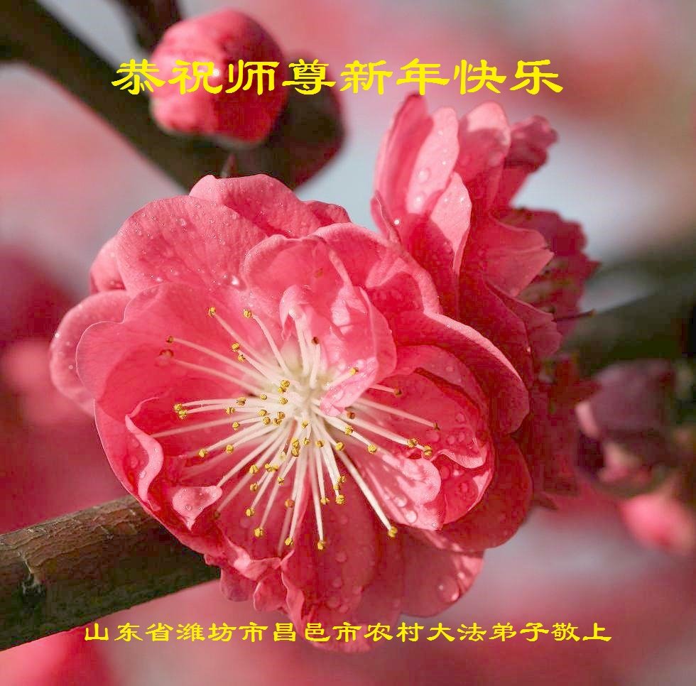 山東省濰坊市昌邑一農村學法小組大法弟子恭祝師尊新年快樂!