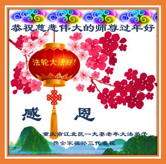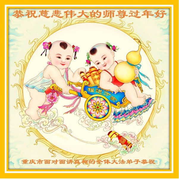 師父過年好!師父辛苦了!弟子感恩師父的慈悲救度,感恩師父比我們自己更珍惜我們,感恩師父為我們承擔了歷史上的一切。弟子在新的一年裏,一定更加精進真修,修好自己,多救人,爭取圓滿跟師父回家,請師父加持,謝謝師父!
