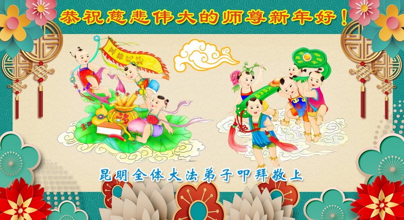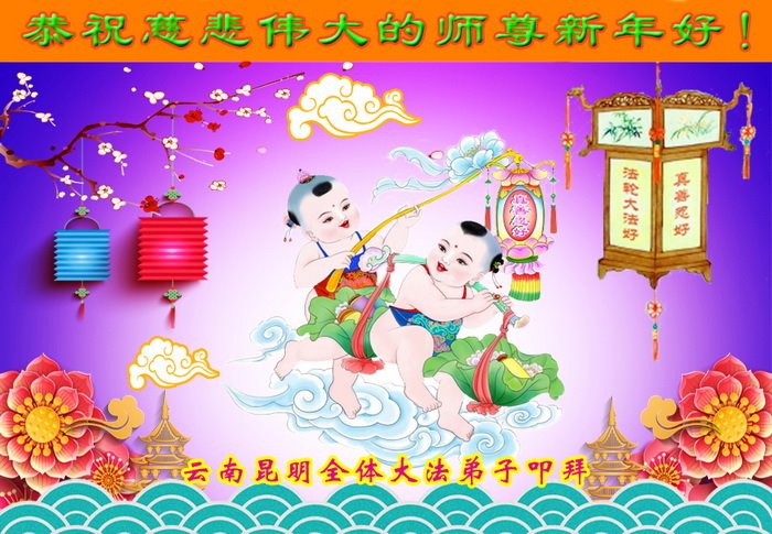 雲南昆明一家大法弟子恭祝師尊新年快樂!