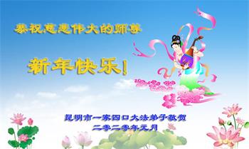 昆明市一家四口大法弟子祝慈悲偉大的師尊新年快樂!