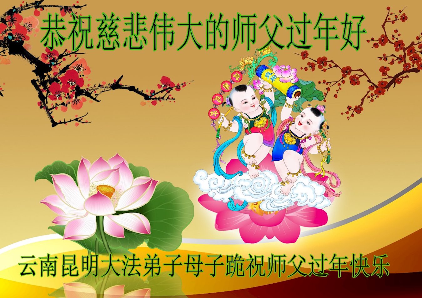 雲南省昆明市大法弟子母子恭祝師父過年好!