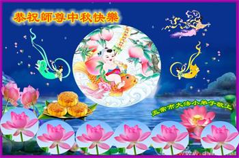 我是大法小弟子,師父中秋節快樂!師父對我保護有加,在我身上出現很多奇蹟,僅舉一例,我的頭把牆撞了一個坑,頭卻沒有事。謝謝師尊!我想告訴師父,我會背好多《洪吟》中的詩了。