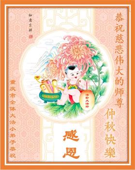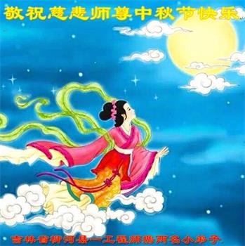 遼寧省瀋陽市一大法弟子攜小弟子恭祝師尊中秋節快樂!