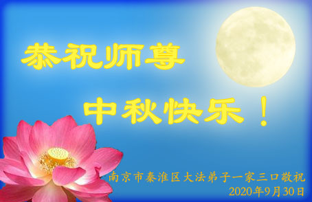 江蘇南京市秦淮區大法弟子一家三口恭祝慈悲偉大的師尊中秋節快樂!