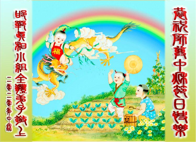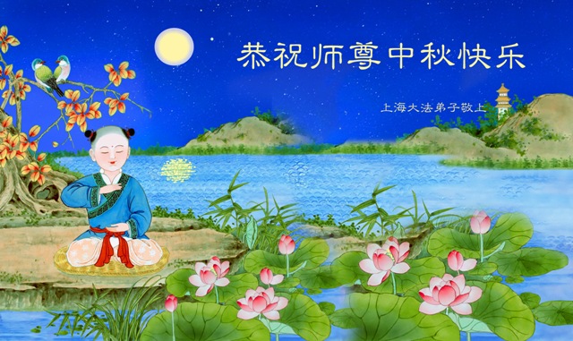 因為有您,太陽照常每天升起;因為有您,世人還能過上中秋;……這世界上最幸福最自豪的一句話就是:「我是有師父的人,我的師父是李洪志!」師父,節日快樂!弟子感謝您!眾生感謝您!無窮的蒼宇感謝您!