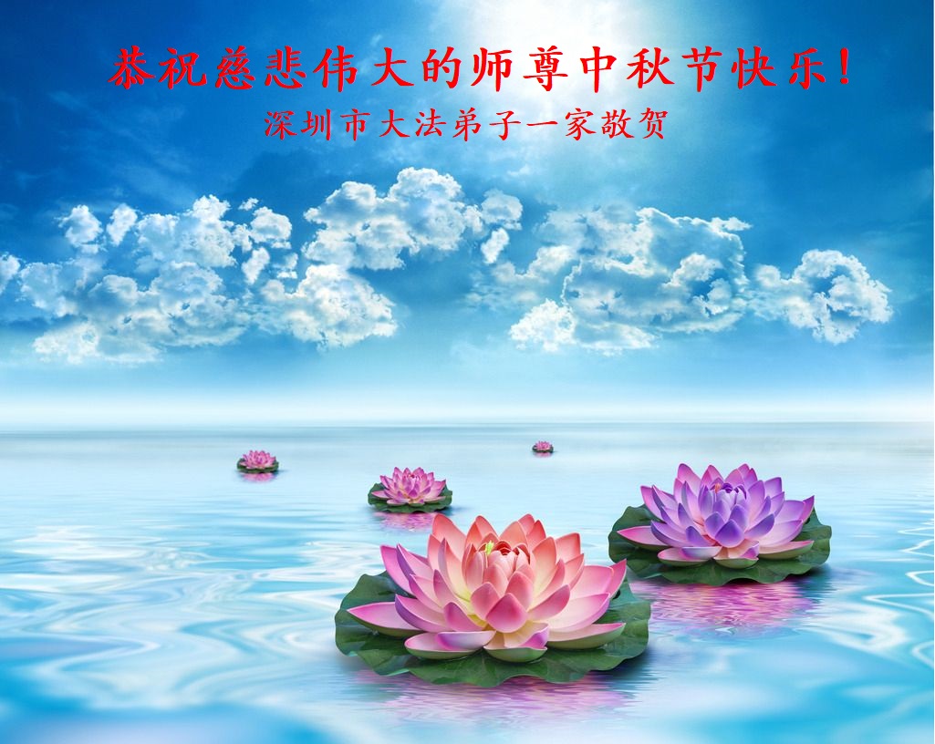 廣東省深圳市大法弟子一家恭祝慈悲偉大的師尊中秋節快樂!