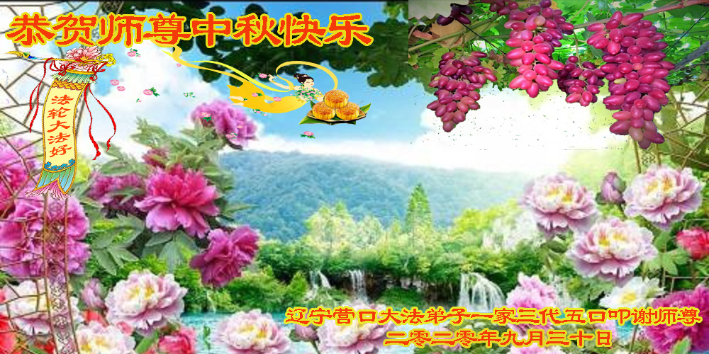 遼寧省營口市大法弟子一家三代五人恭賀師尊中秋快樂!