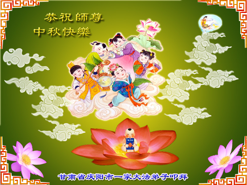 甘肅慶陽市一家大法弟子恭祝慈悲偉大的師尊中秋快樂!師尊幸苦了,叩拜師尊的慈悲苦度!
