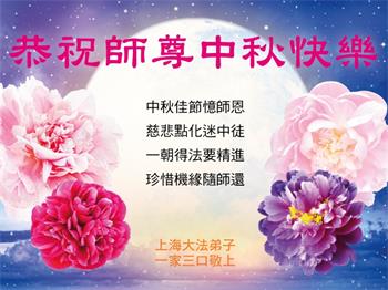 上海大法弟子一家三口恭祝師尊中秋節快樂!
