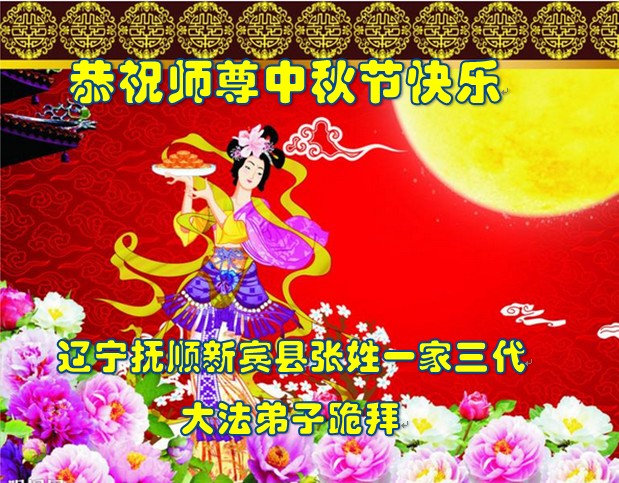 遼寧撫順市新賓縣張姓一家三代大法弟子恭祝師尊中秋節好!