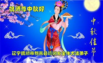 遼寧撫順市新賓縣榆樹鄉全體大法弟子恭祝師尊中秋節好!