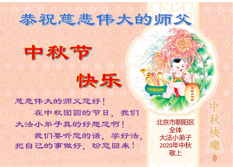 北京市朝陽區全體大法小弟子恭祝師父2020年中秋節快樂!