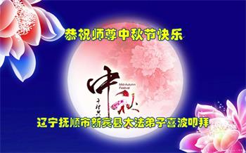 遼寧撫順市新賓縣滿族大法弟子恭祝師尊中秋節快樂!