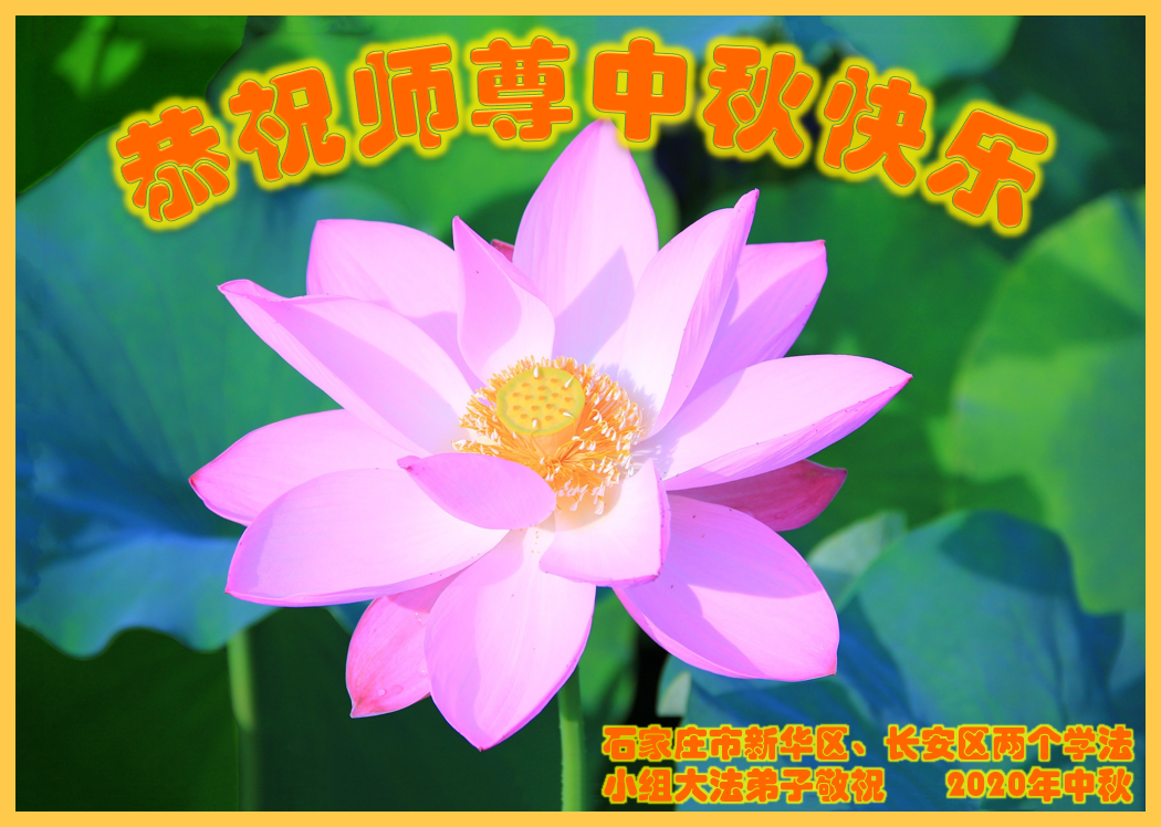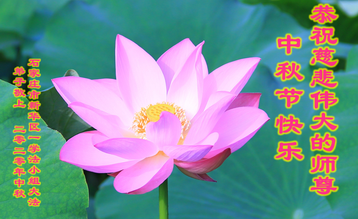 石家莊市新華區一學法小組大法弟子恭祝慈悲偉大的師尊中秋節快樂!
