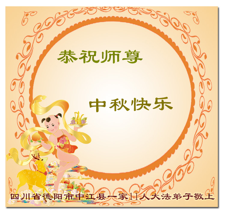四川省德陽市中江縣一家三口大法弟子恭祝慈悲偉大的師尊中秋節快樂!